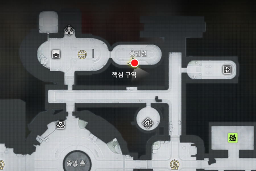 흰색 화면 뒤로 가서 응접실로 들어가서