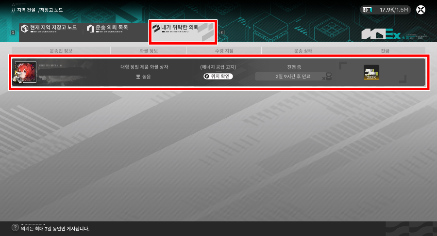 위에 운송 의뢰 목록도 있고