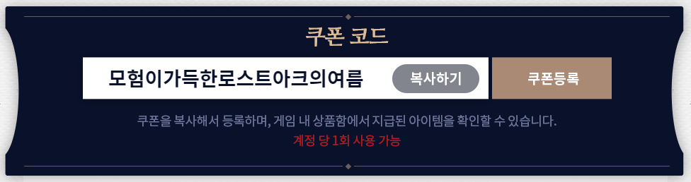 쿠폰코드 - 모험이가득한로스트아크의여름