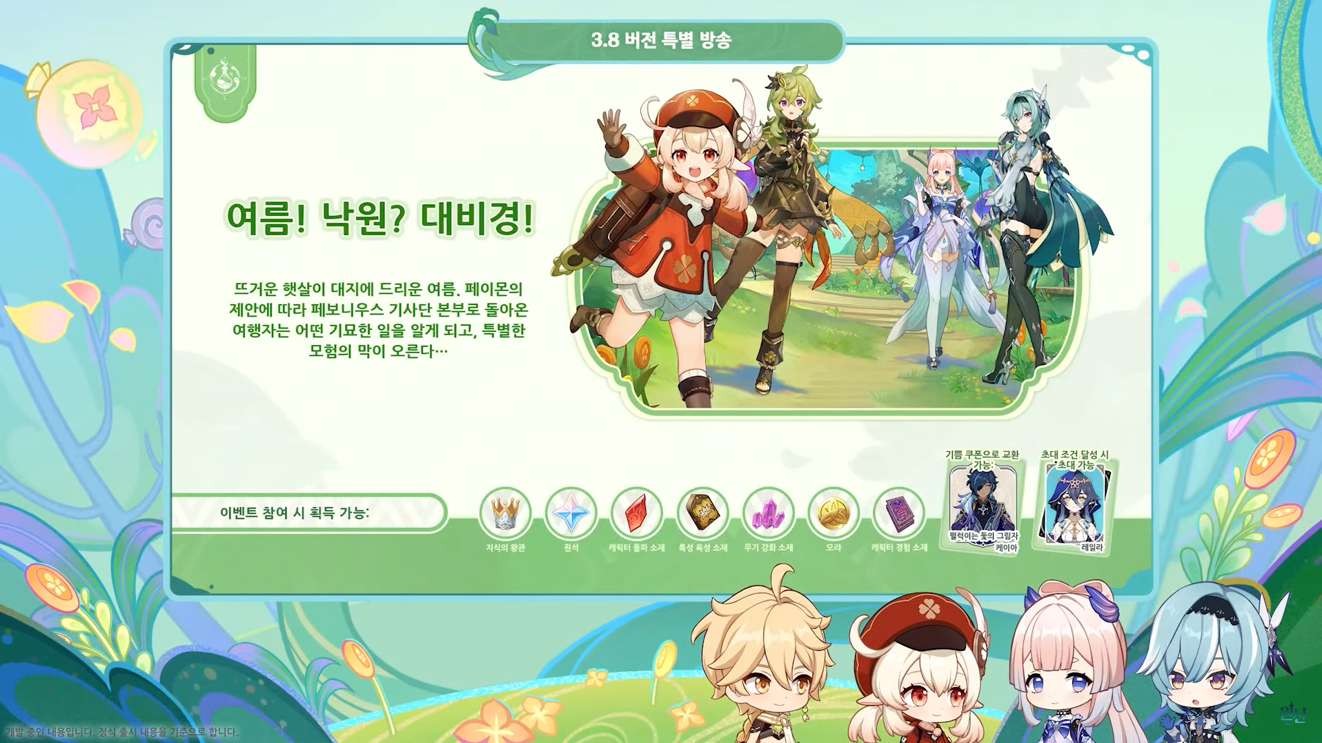 | 원신 3.8 특별 방송 일정 및 이러쿵저러쿵 (0) | 2023.06.21 |