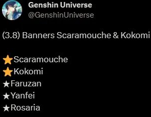 3.8 5성 픽업 확정 / 4성 픽업 변화...?
