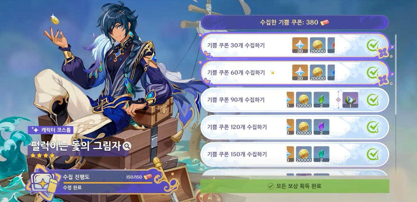 이렇게 탐험해서 얻은 쿠폰들은