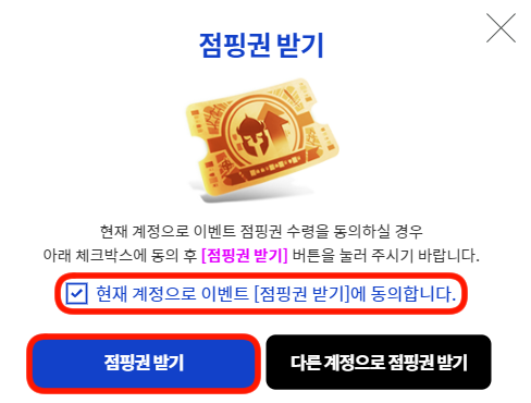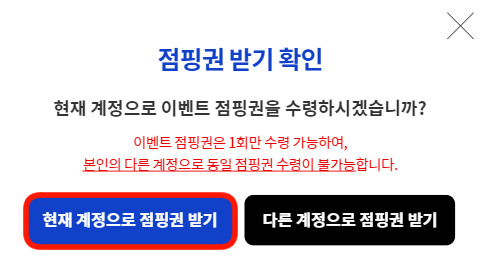 이벤트 점핑권 페이지를 확인할 수 있어요.