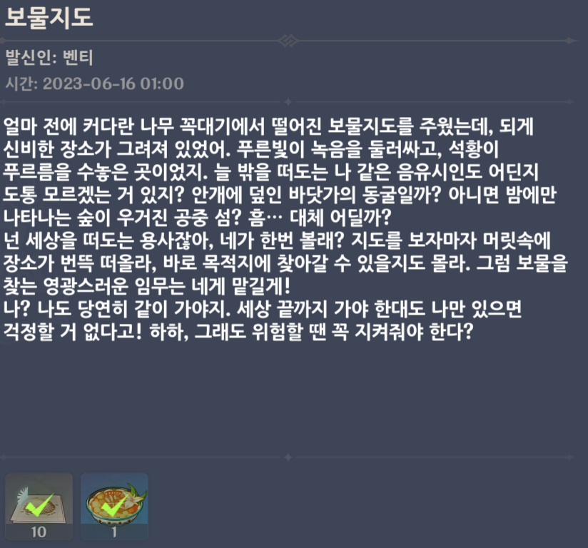 그럼 보물을 찾는 영광스러운 임무는 네게 맡길게!