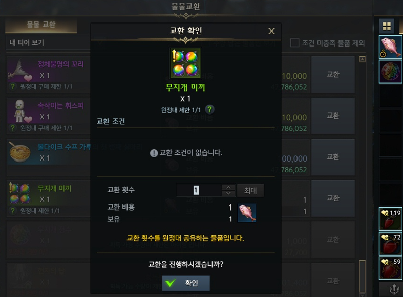 떠돌이 상인 교환이 불가해집니다.