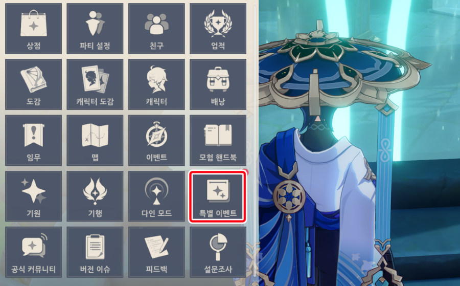 인게임 메뉴에서 특별 이벤트를 선택한 후