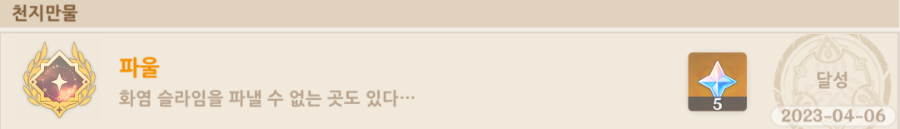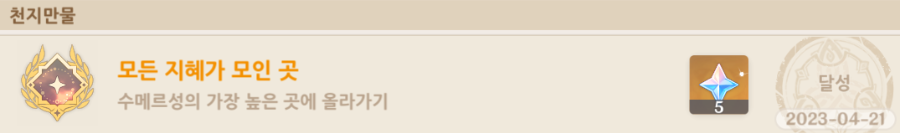 업적 및 5 원석 획득 완료