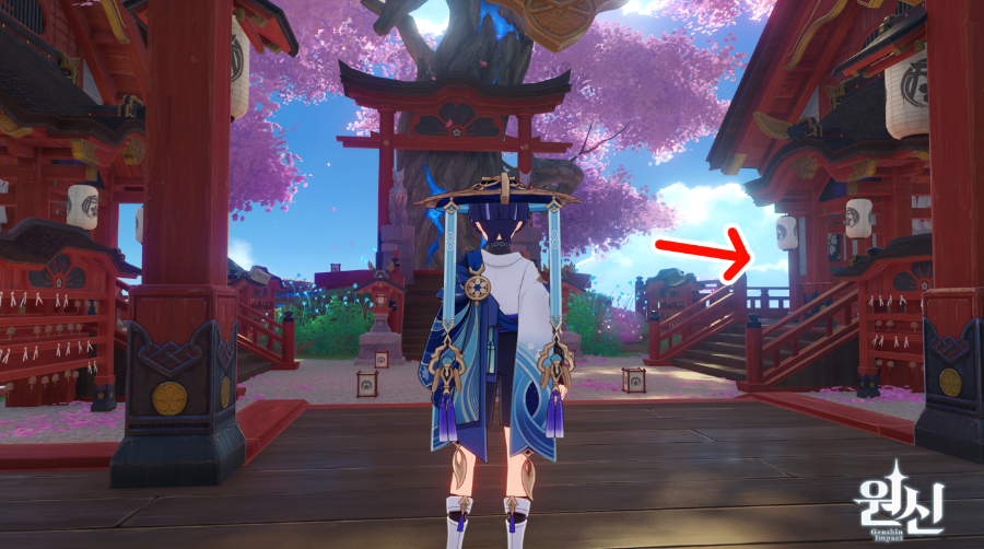 신성한 벚나무를 보고 오른쪽 건물에서
