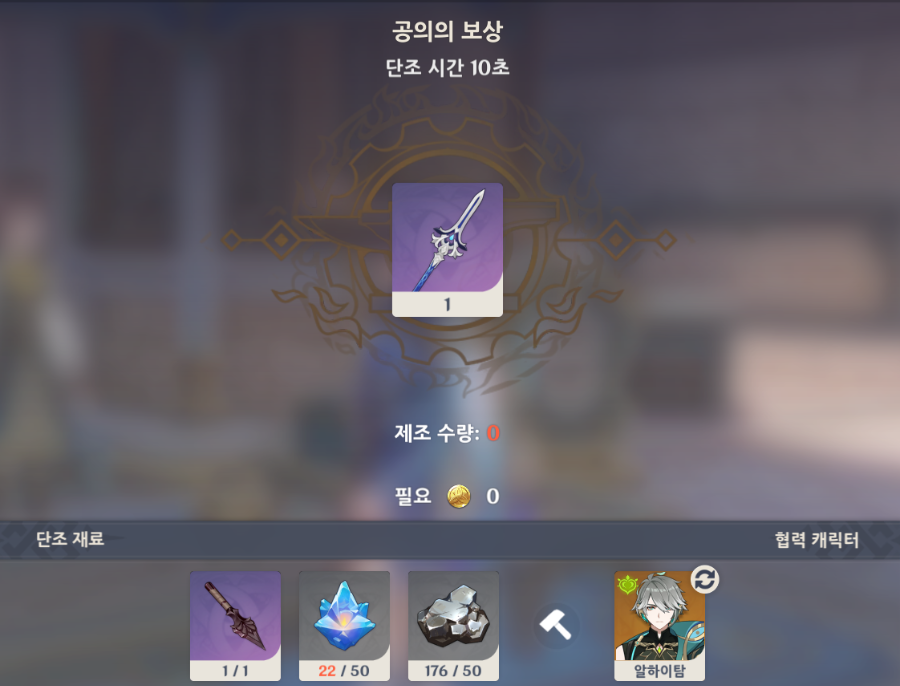| 해연의 피날레 (한손검) | 풍선귤 x 10 / 돌말 x 10 / 응축 결정 x 10 |