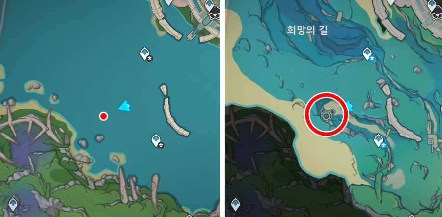 위치는 폰타인성 7시 방향 물 속