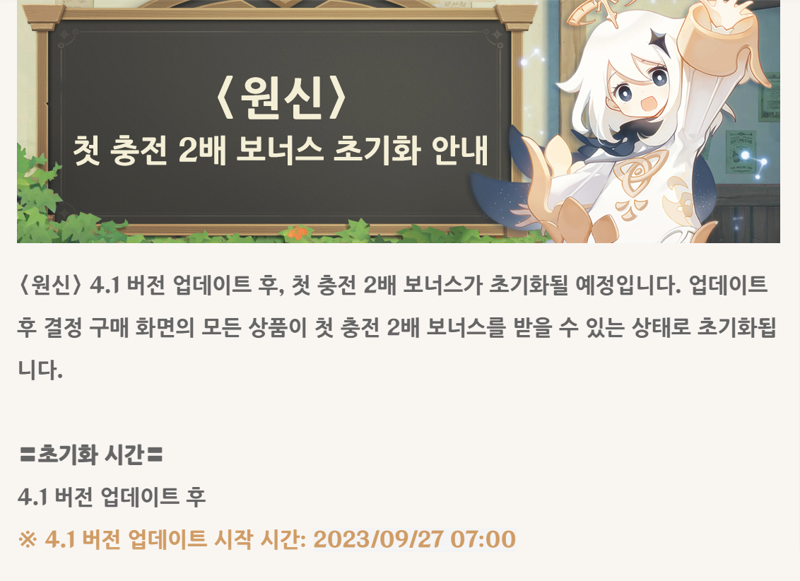 | 2023 9월 원신 3주년 창세의 결정 초회 리셋 곧 ...! (1) | 2023.09.15 |