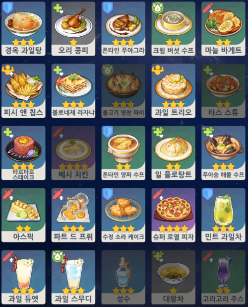 2. 4.3 폰타인 요리 / 음식 획득처 (완제품)