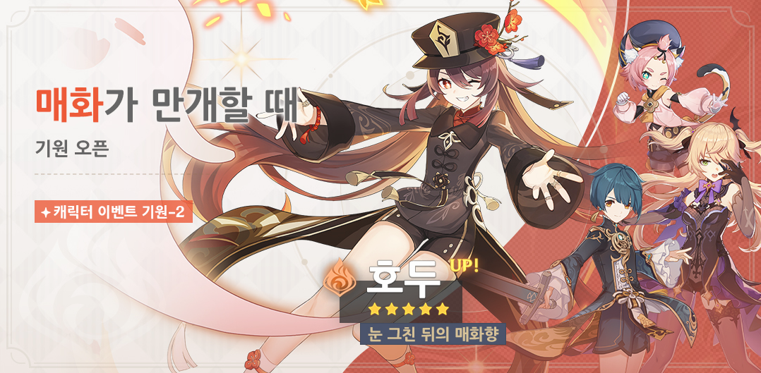 4.1 특별방송으로 확정 된 전반 픽업 5성 캐릭터 호두 9월 스타라이트 상점 로테이션이고 4.1 4성 라인업에 언급되고 있는 행추 둘 다 예상꽃을 쓰는 캐릭터고 나선 현역들이라 부지런히 키워야할