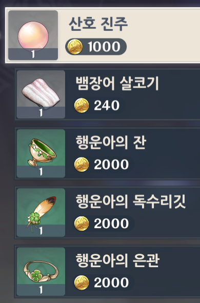 | NPC | 판매물품 (개수) | 위치 | 사용처 |