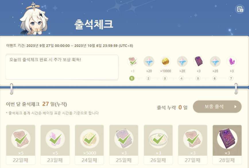 기존의 호요랩 출석 체크 보상에