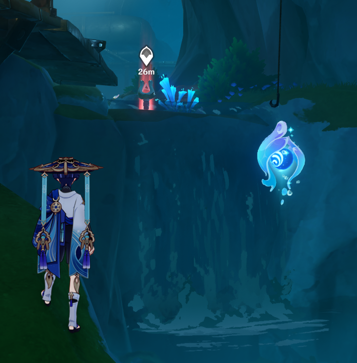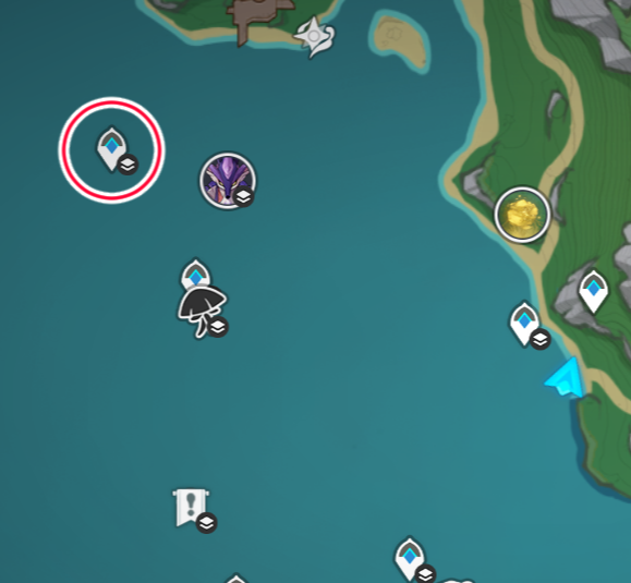 4.0 신규 플레이어블 캐릭터인 느비예트의 캐릭터 돌파 재료 [ 원류 바다의 기린 뿔 ] 을 드랍하는 천년 묵은 진주 기린 찾아가는 법 위치는 4.1에 새로 열린 지역인 리피 구역의 바다속 일단 근처