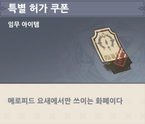 마신 임무에서 쓰이는 특별 허가 쿠폰은