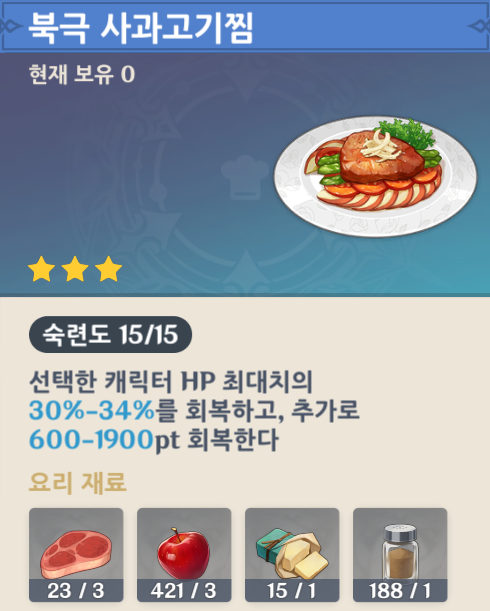 ㄴ짐승고기 3 사과 3 버터 1 후추 1