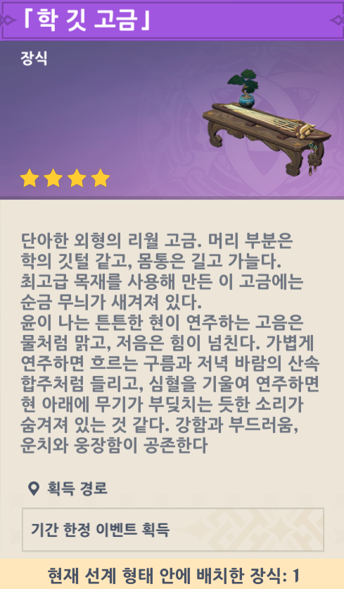 구성품 목록 원석 x 1,000 꿈에서 탄생한 찰나의 날개 축제 우아한 선율 학 깃 고금 |
