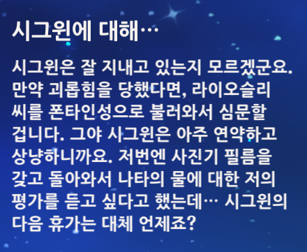 캐릭터 음성에서 두번이나 언급될 정도로