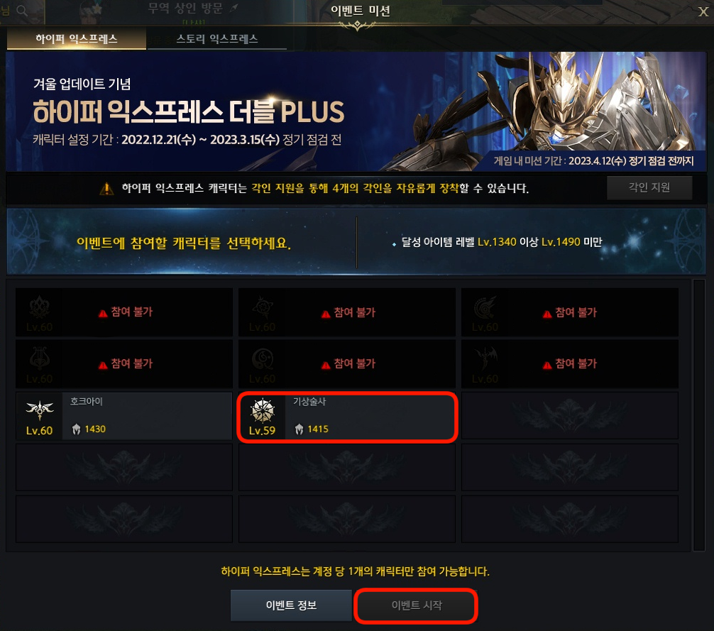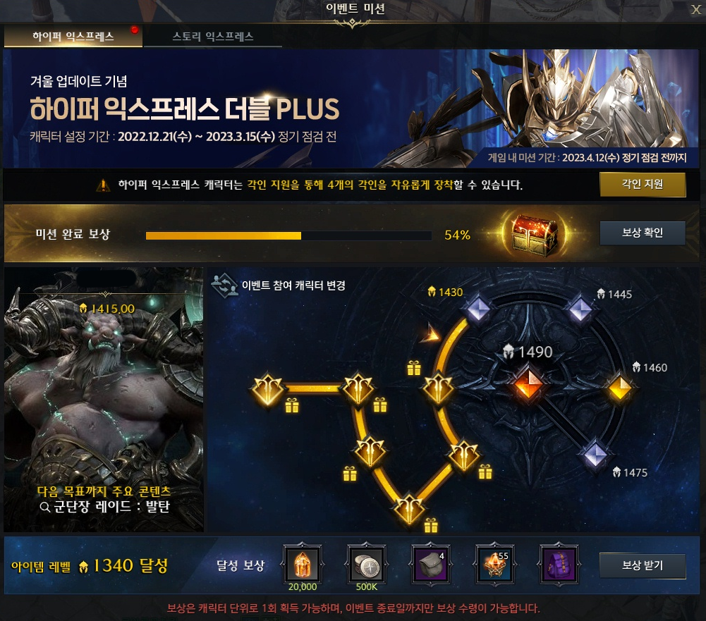레벨 1340 ~ 1490 사이의 캐릭터만