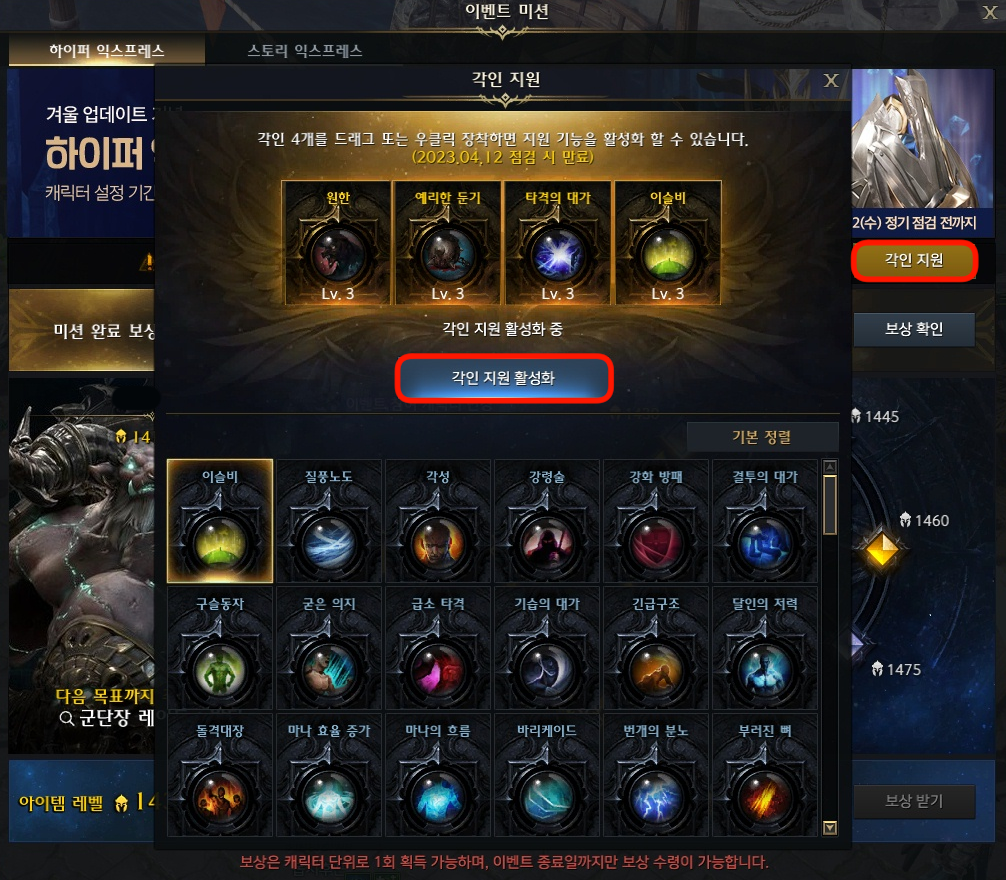 캐릭터 접속하여 이벤트 미션을 클릭하면