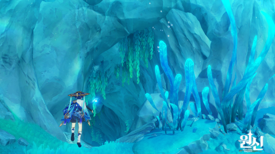 수초가 매달려 있는 동굴이 보일거임