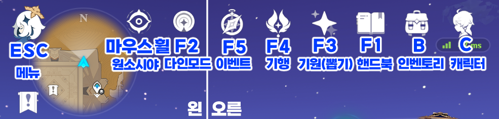 | ESC | 전체 메뉴 / 페이몬 메뉴 |