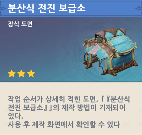 | 2 | 장식 분산식 전진 보급소 장식 핵심 조명 빛나는 교외 폰타인의 광맥 찾기 해금 |