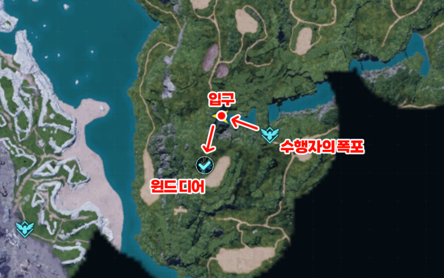 좌표로 보면 수행자의 폭포 (-223, -442)