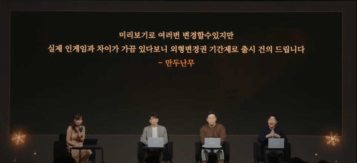 지난 2022 로아온 윈터에서 외형변경 관련하여 실제 인게임과 커스텀 화면에서 보는 디테일이 차이가 큰 것에 대해 외형변경권 기간제 출시에 대한 이야기가 나왔었죠.