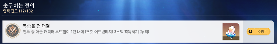 목숨을 건 대결 업적 획득 완료