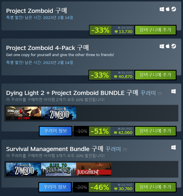 스팀에서 프로젝트 좀보이드를 할인해서 주변에서 하나둘씩 사기 시작했다.