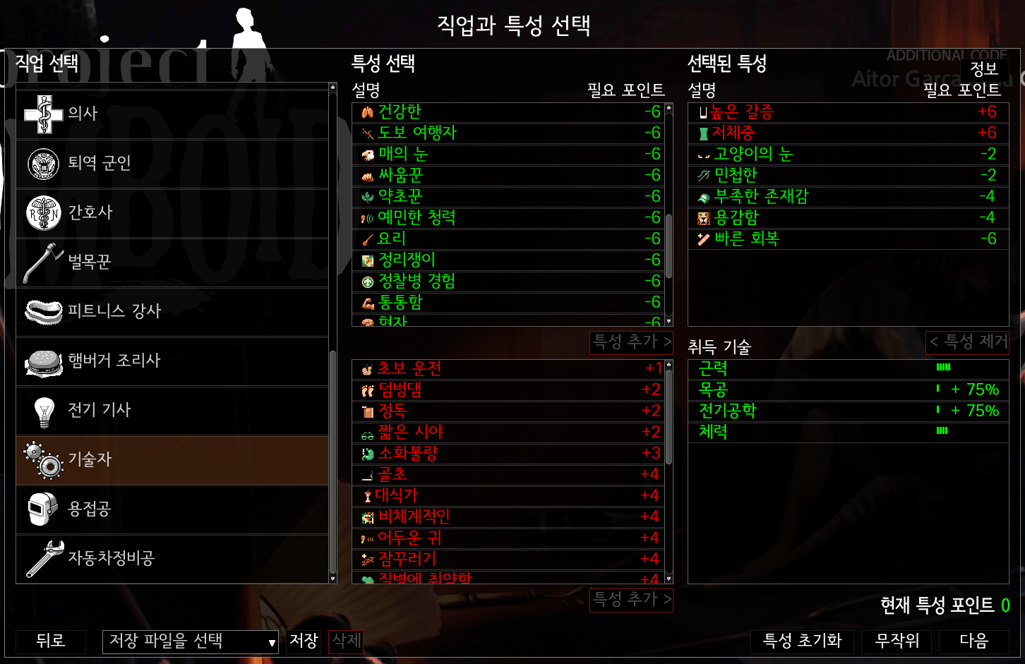 나는 집을 만들어보고 싶어서 목공이랑 전기공학을 올려주는 기술자로 골랐다.