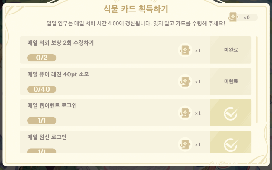 일일 임무 탭에 있는 임무를