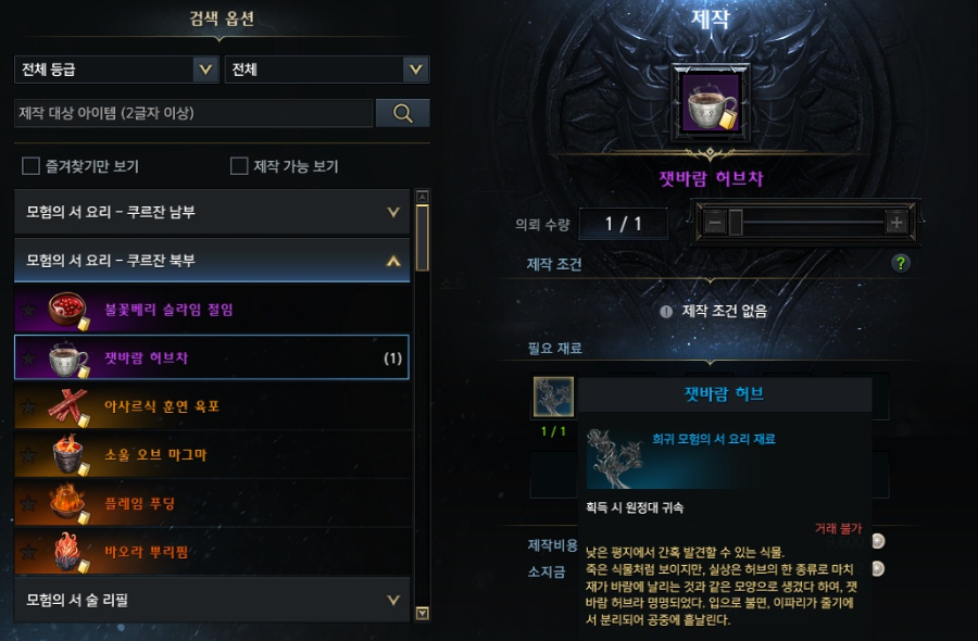 신규 대륙 쿠르잔 북부 모험의 서 요리
