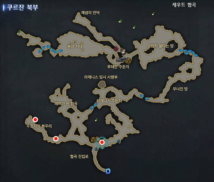 쿠르잔 북부 모험의 서숨겨진 이야기[ 세베크의 폭주 ] 스포없이 위치만 ~ 쿠르잔 북부 세우트 협곡라제니스 주둔지 3시 방향세베크의 폭주 위치 몹 없이 길 따라쭉 가면 되는 루트라 찾기