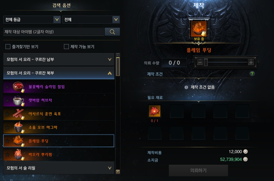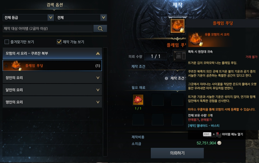 신규 대륙 쿠르잔 북부 모험의 서 요리