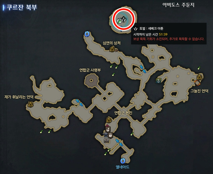 쿠르잔 북부 모험의 서숨겨진 이야기[ 잃어버릴 수 없는 물건 ] 스포없이 위치만 ~ 먼저 쿠르잔 북부 아비도스 주둔지연합군 본진에서 1번을 먹고나서쿠르잔 남부 엘네아드로 이동
