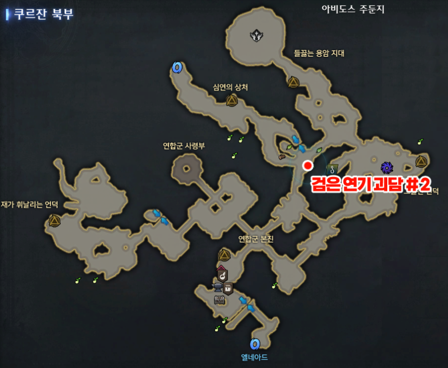 쿠르잔 북부 모험의 서숨겨진 이야기[ 잃어버릴 수 없는 물건 ] 스포없이 위치만 ~ 먼저 쿠르잔 북부 아비도스 주둔지연합군 본진에서 1번을 먹고나서쿠르잔 남부 엘네아드로 이동