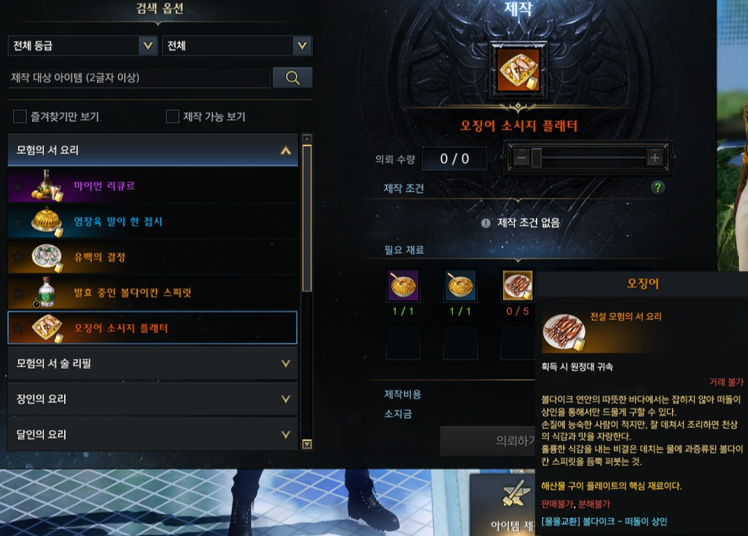 모험의 서 요리재료로는