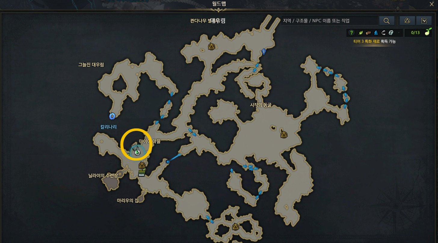 출현 위치는 대우림 마이어 마을