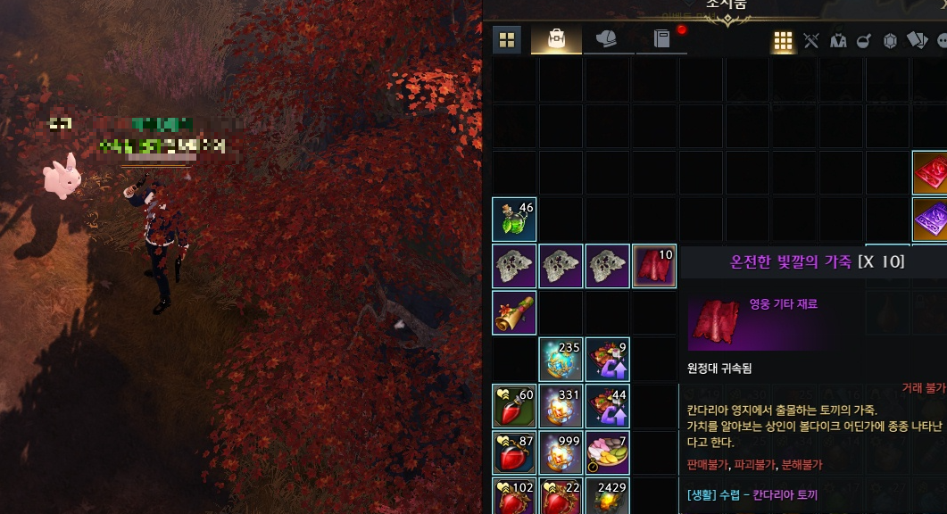 칸다리아 토끼를 잡으면 가죽이 나오는데