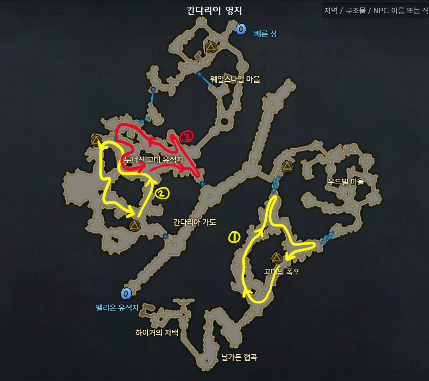 내가 칸다리아에서 할때 주로 했던 루트