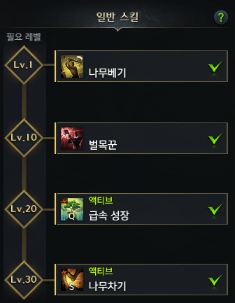 비밀의 묘목은 벌목 레벨 20에 배우는