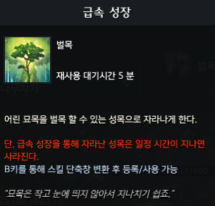급속 성장은 쿨타임이 5분이나 되니