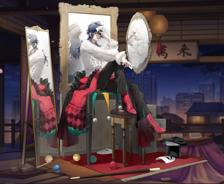 광대 분장을 지운 대기실 모드 느낌의 일러스트
