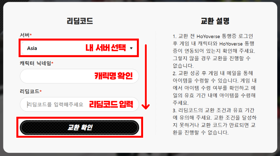 리딤코드 입력 후 교환하면 교환완료