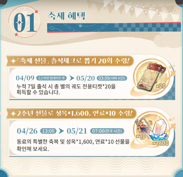 붕괴 스타레일 2주년 보상 목록 [ 3.2 ]
