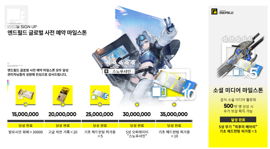 사전 예약 보상은 5성 캐릭터 스노우샤인과